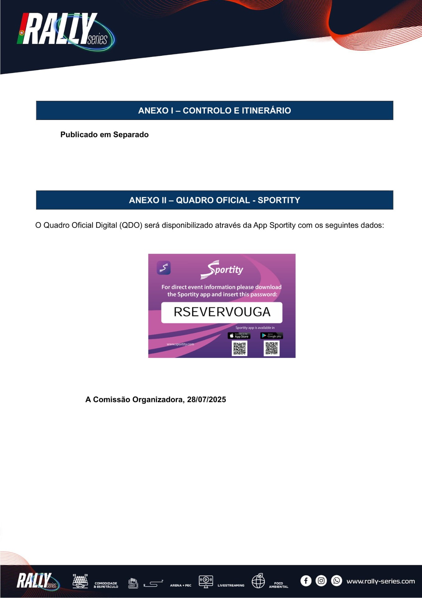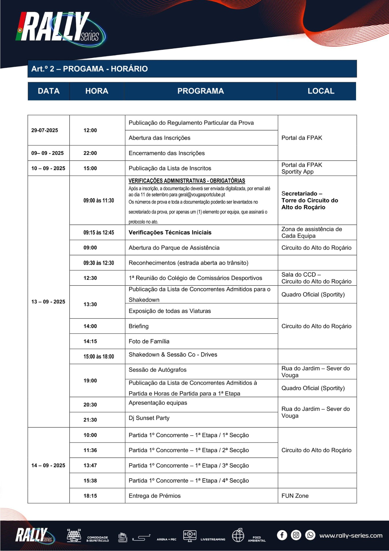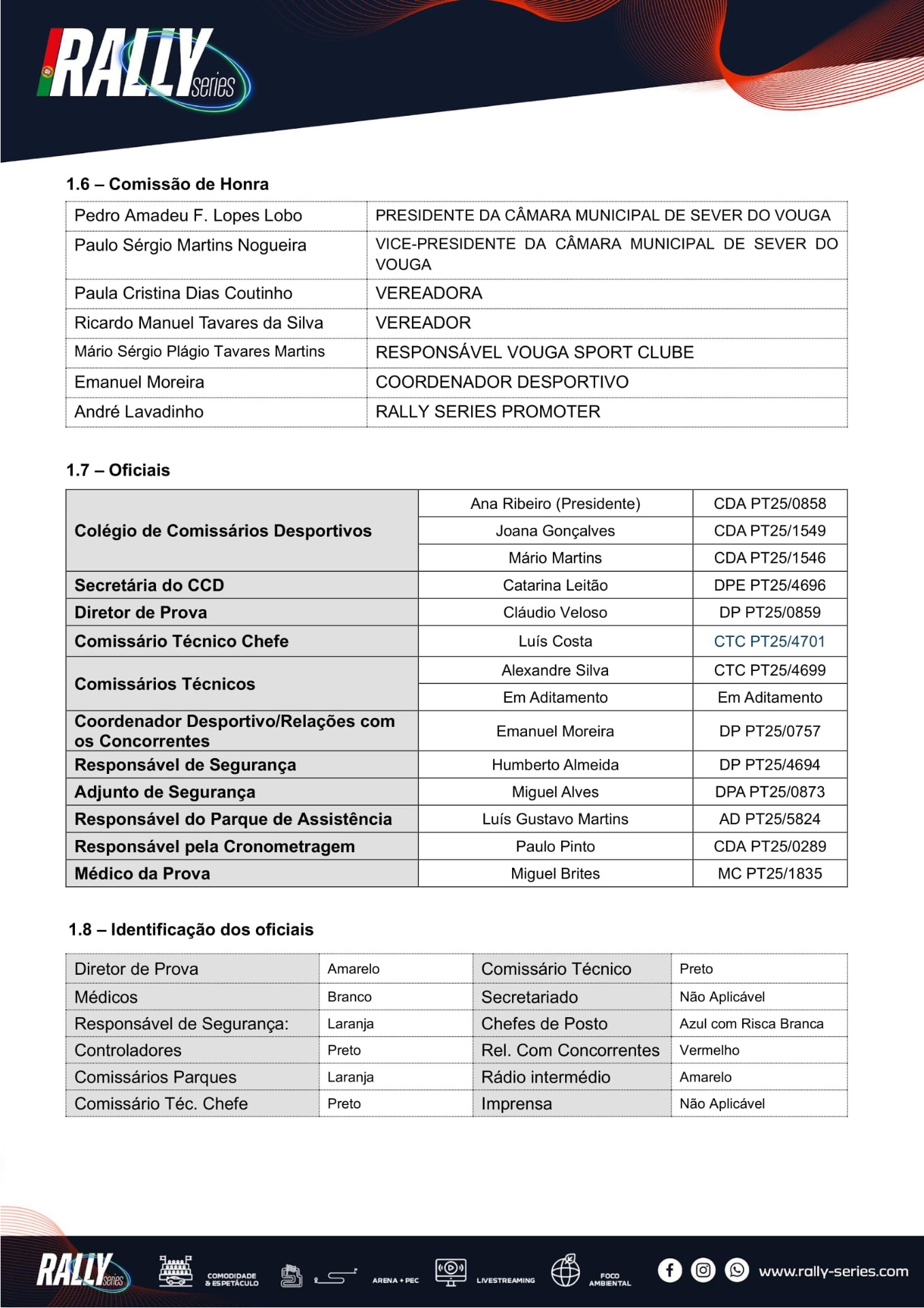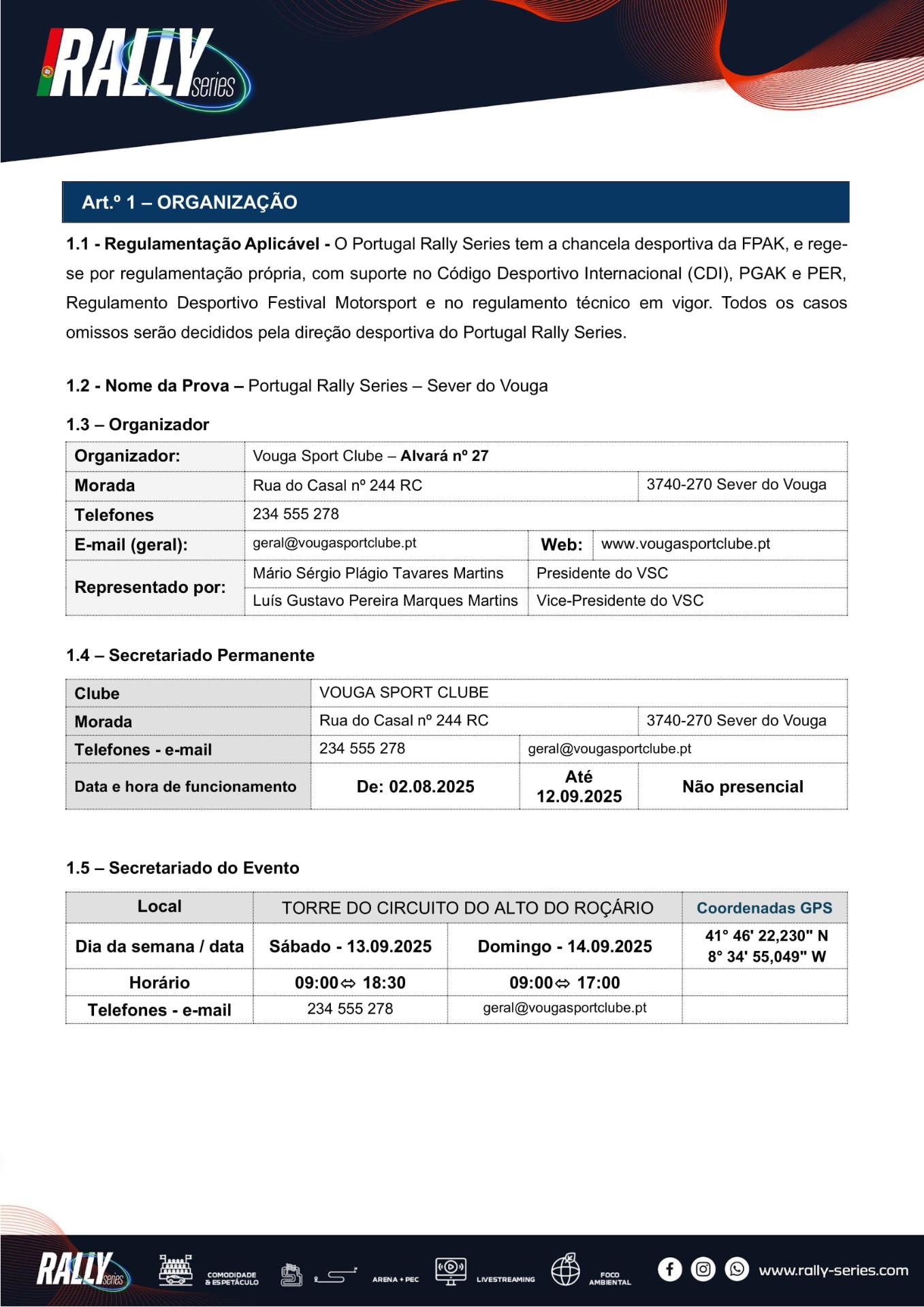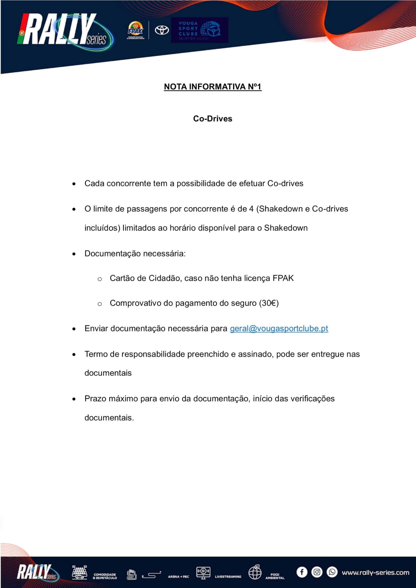 Lista de Ordem de Partida Street Show + Lista de Inscritos + Comunicação DP N.º 1 + Aditamento N.º 1 + Nota Informativa N.º 1_Co-Drives + Regulamento Particular + Mapa de Controlos, Itinerários e Horários + Mapa Arena Rally Series